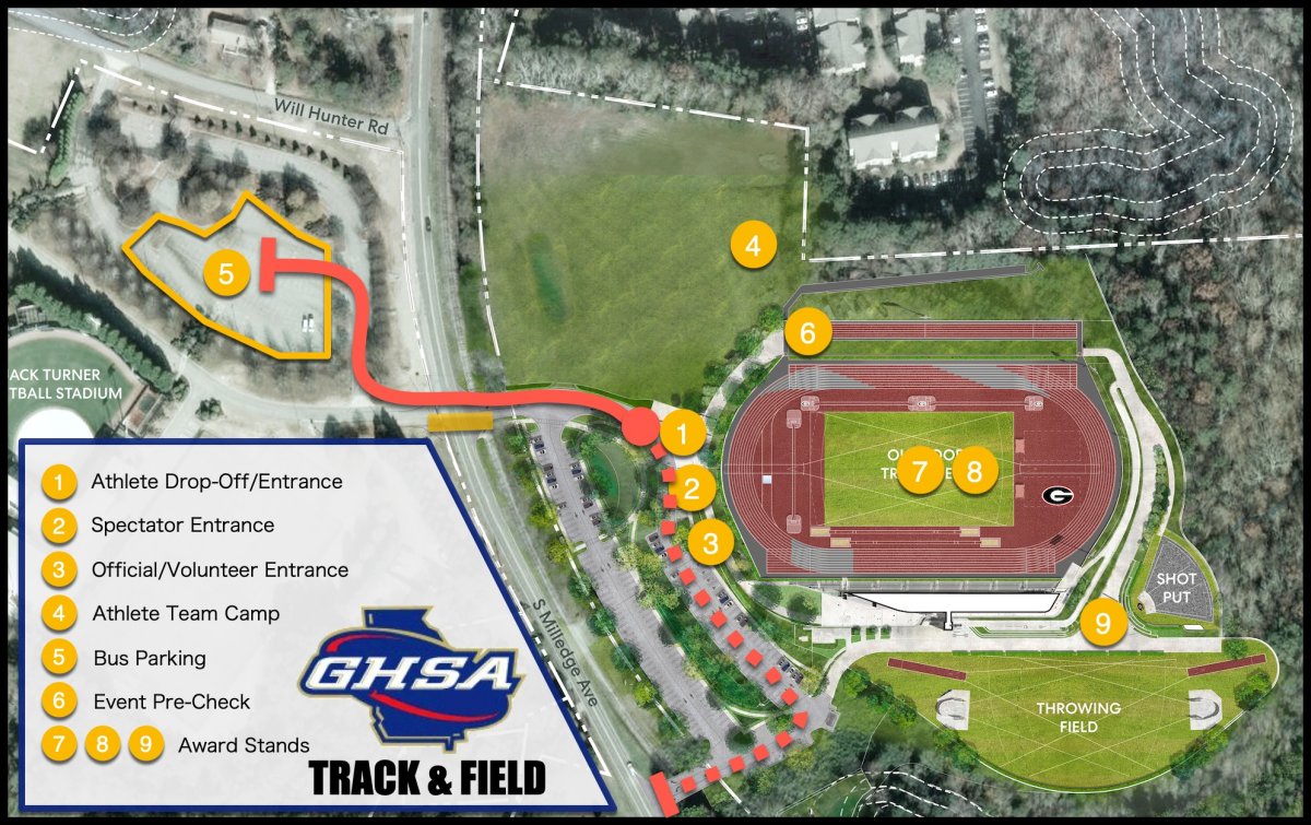 The GHSA Track & Field State Championships presented by Atlanta Track Club will be held on May 11–14, 2026 at Spec Towns Track at University of Georgia Track & Field Complex. Tickets will be available on GoFan. Track finals will be streamed live on NFHS Network.