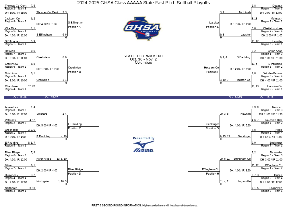 2024-2025 GHSA Class AAAAA State Fast Pitch Softball Playoffs