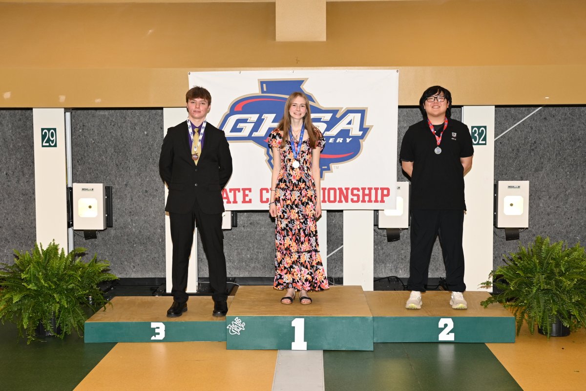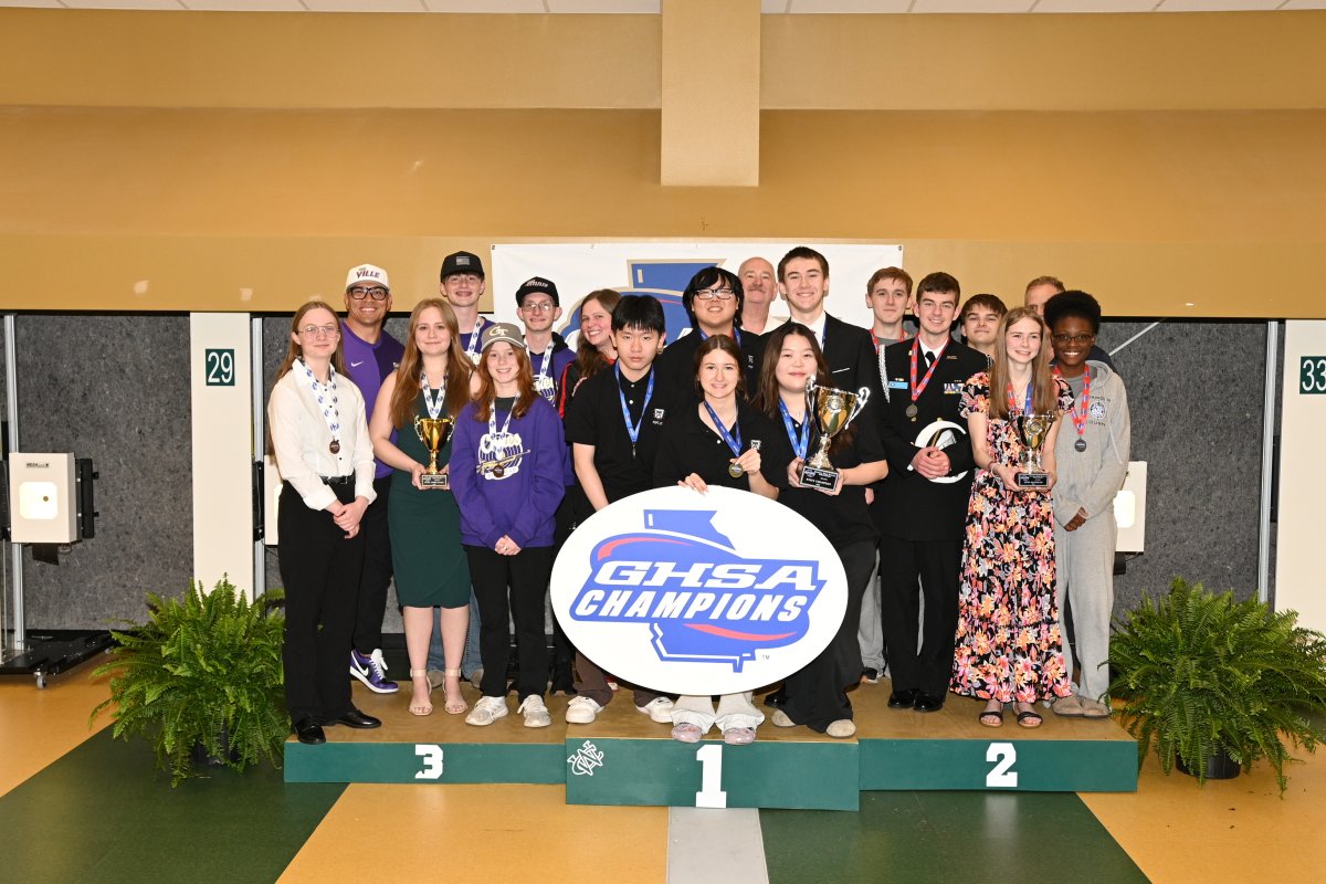 Congratulations to North Gwinnett on winning the GHSA Riflery State Championship on March 14th at the Ware County Shooting Complex. The Bulldogs fired 2,337 team total in the three-position air rifle format followed by Camden County (2,328) and Cartersville (2,313). The individual winner was Briana Dougherty, Camden County followed by Remy Shin, North Gwinnett, and JT Wright, Lumpkin County. Thanks to Ware County Shooting Complex, Dr. Kent Morrow (meet director), range officials, BPI volunteers, teams, and competitors on a successful championship.