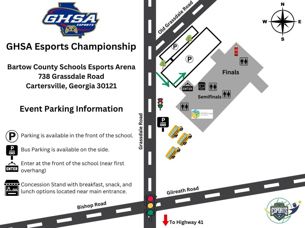 The 2025-2026 GHSA Spring Esports State Championships, powered by PlayVS, will be held on April 25, 2026 at the Bartow County Schools Esports Arena. GHSA Championship Titles are Rocket League (A-3A and 4A-6A), Splatoon 3, and Marvel Rivals. Trophies and medals will be awarded to champions and runners-up in each game. Spectators are welcome to attend the event free of charge.